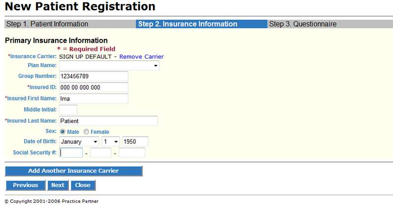 - C: There are many hundreds of insurnace companies, plans, and permutations. Some are different only by a post office box number. If you find yours exactly, click on it; otherwise, use the company titled SIGN UP DEFAULT. We will fix this when you come to the office.