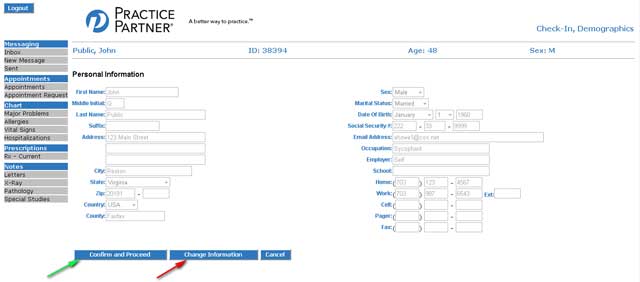 - The next screen shows demographic information. If correct, click on CONFIRM AND PROCEED. (green arrow) If some information is incorrect, click on CHANGE INFORMATION (red arrow)